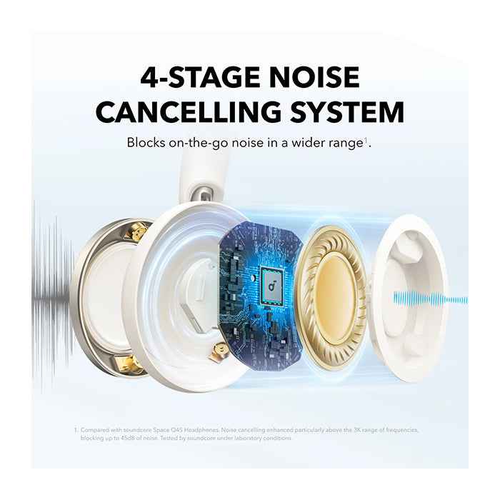Active Noise Cancelling Adaptive ANC 3.0 with upgraded movement-aware algorithm and 4-stage noise cancelling system