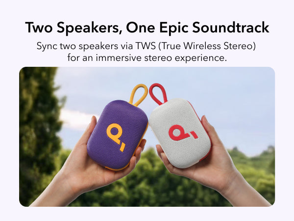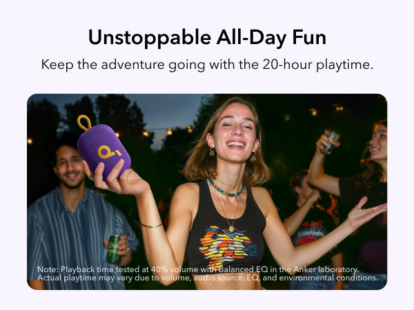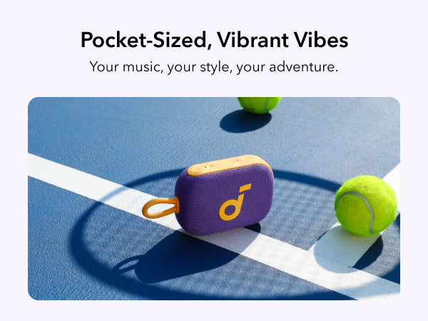 Experience **All-Day Power, Vibrant Vibes** with the pocket-sized soundcore Select 4 Go. This tiny but mighty portable Bluetooth speaker is designed for all your adventures, offering powerful sound, robust protection, and exceptional battery life to keep the music going wherever you are. Your music, your style, your adventure.