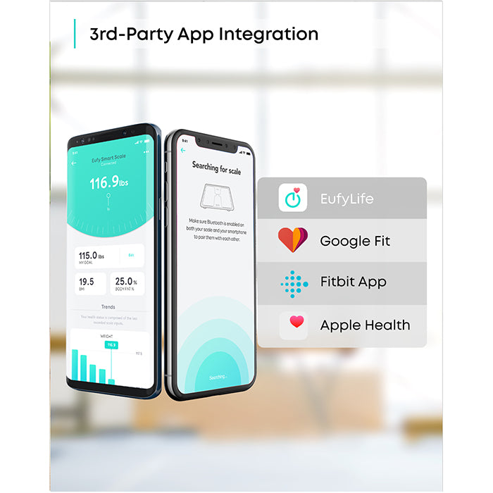 | Compatibility | **WORKS WITH YOUR FITNESS APPS:** Data can be tracked and synced with **Apple Health, Google Fit, or Fitbit** in addition to the EufyLife app. |